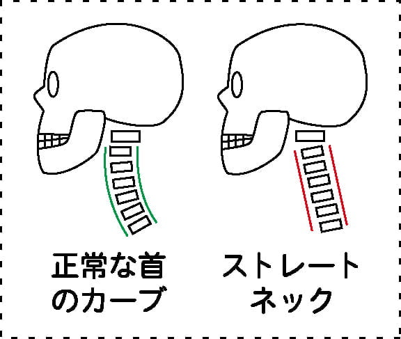 ストレートネックとは、本来前方向にカーブを描いている首の骨が、文字通り真っすぐになっている状態を指します。