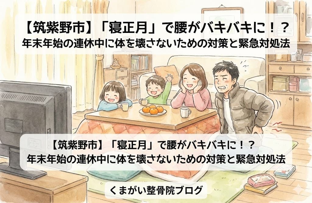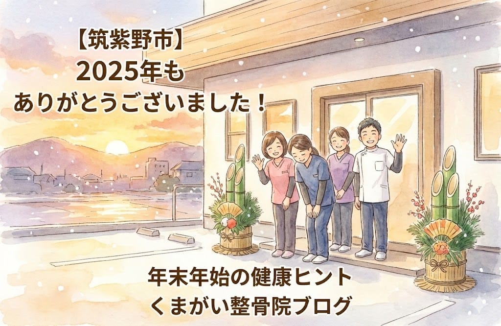 こんにちは!筑紫野市杉塚の「くまがい整骨院」です。 いよいよ12月27日、今日で仕事納めという方も多いのではないでしょうか? 一年間、本当にお疲れ様でした!