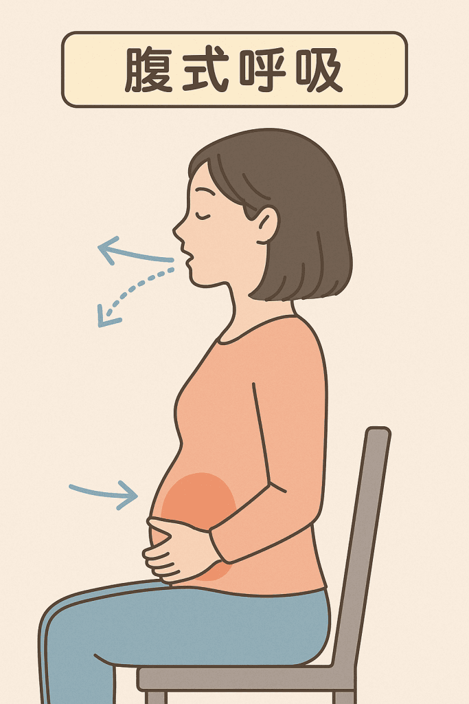 お腹に手をあて、鼻からゆっくり息を吸いながらお腹をふくらませる