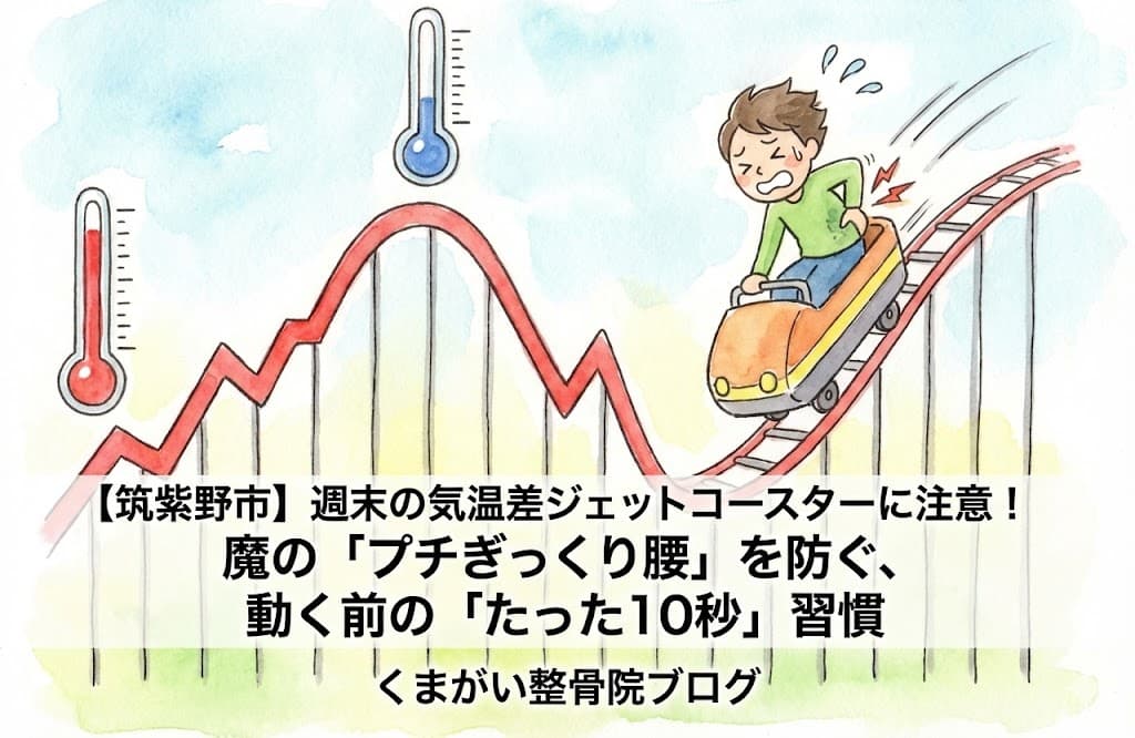 なぜ、この時期に腰痛が増えるのでしょうか。 それは、体が気温の変化についていけず、筋肉が**「寒暖差疲労」**を起こしているからです。