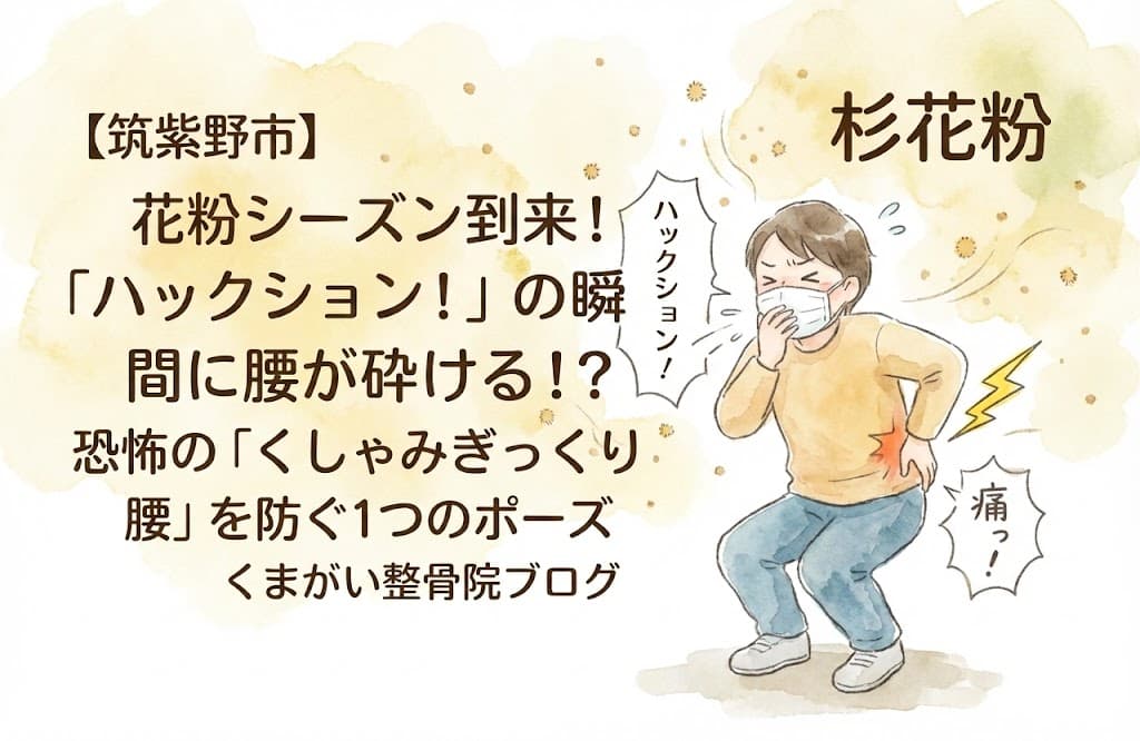 花粉症の方には憂鬱な季節ですが、実は私たち整骨院にとっても、この時期は非常に緊張感が走ります。 なぜなら、**「くしゃみをした瞬間に腰から崩れ落ちた」という、『くしゃみぎっくり腰』**の患者さんが急増するからです!