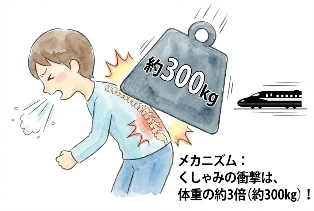 くしゃみが出る時の空気のスピードは、なんと**時速約300km(新幹線とほぼ同じ)**と言われています! この爆発的なエネルギーが体から放出される際、私たちの体には想像以上の負担がかかります。