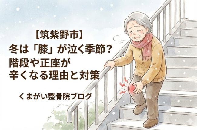 【筑紫野市】冬は「膝」が泣く季節?階段や正座が辛くなる理由と、注射に頼る前にできる「温め&筋トレ」ケア