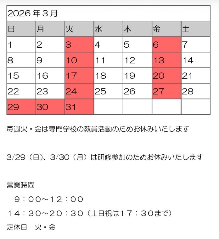 3/6(金)専門学校の教員活動の為お休み致します
